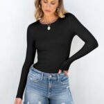 ANRABESS Women Long Sleeve Shirts Rib Knit Slim Fit Tops Basic Tee 2025 Fall Outfits Casual T-Shirt Underscrubs Layer Clothes