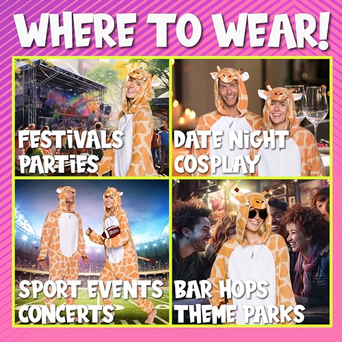 Funziez! Slim Fit Adult Onesie – Animal Halloween Costume – Plush Unisex One Piece Cosplay Suit for Women and Men