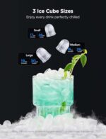 3 Ice Cube Sizes: Our ice maker features three adjustable bullet ice cube sizes (small, medium, large), and using purified water can minimize ice cube sticking. This product comes with a 1.5 lb portable ice basket, providing versatile ice cube combinations.