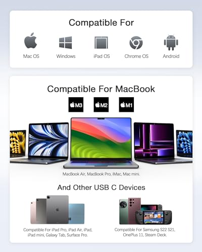 Travel-Ready & Broad Compatibility – Slim aluminum shell (~2.4oz) fits your bag. Works with MacBook Pro/Air, Dell, HP, Lenovo, Surface, iPad Pro and other USB-C laptops/tablets/phones that support DP Alt Mode