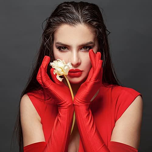 Nackiy Long Black Opera Gloves for Women, 1920s Satin Stretchy Elbow Length Party Gloves Costumes Bridal, 20inch