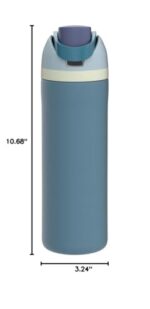 The Owala FreeSip Insulated Stainless-Steel Water Bottle with Locking Push-Button Lid easily tackles every thirst. With a built-in, easy-clean straw and a wide-mouth opening, the FreeSip reusable bottle is designed for drinking two different ways: sipping upright through the straw or tilting back to swig from the wide-mouth spout opening. Add in a push-to-open lid and playful colors, and staying hydrated has never been simpler—or more fun. Additional features include double-wall insulated stainless steel that keeps drinks cold up to 24 hours, a carry loop that doubles as a lock, a cup holder-friendly base, and a wide opening for easy cleaning and adding ice. The Owala FreeSip Insulated Stainless-Steel Water Bottle with Locking Push-Button Lid is available in three sizes: 24-Ounce, 32-Ounce, and 40-Ounce. Lid is dishwasher safe; hand wash cup. Not for use with hot liquids. Manufacturer’s limited lifetime warranty.